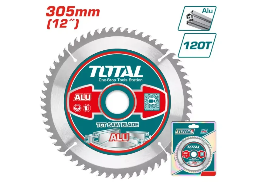 Սկավառակը նախատեսված է ալյումինի երկայնական և անկյունագծային կտրման համար: Ատամներն ամրացված են կարբիդային ներդիրներով, որոնք ապահովում են արտադրողականության բարձրացումն ու շեղբի պիտանելիությունը: Ատամները երաշխավորում են ֆրեզերային կտրումը: Սկավառակը համատեղելի է TOTAL TS42163051 անկյունային սղոցի հետ։ Տրամագիծը՝ 305մմ(305*3*16/25.4)։