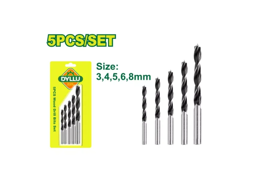 Հավաքածուն ներառում է 5 հատ փայտի հորատման գայլիկոն։ Չափերը՝ 3x61մմ, 4x75մմ, 5x86մմ, 6x93մմ, 8x117մմ։