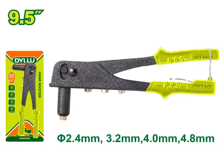 DYLLU DTHR1609 ամրացման սարքը կիրառվում է մետաղյա թիթեղների, բարակ պրոֆիլների ամրացման համար։ Գլխավոր առանձնահատկությունն այն է, որ ամրացնելիս աշխատանքային նյութի երկու կողմերին հասանելիություն հարկավոր չէ։ Գործիքը հնարավորություն է տալիս միայն մեկ կողմից գամերն ամրացնելու։ Կիրառելի ալյումինե գամերի չափերը՝ 2.4-4.8մմ։