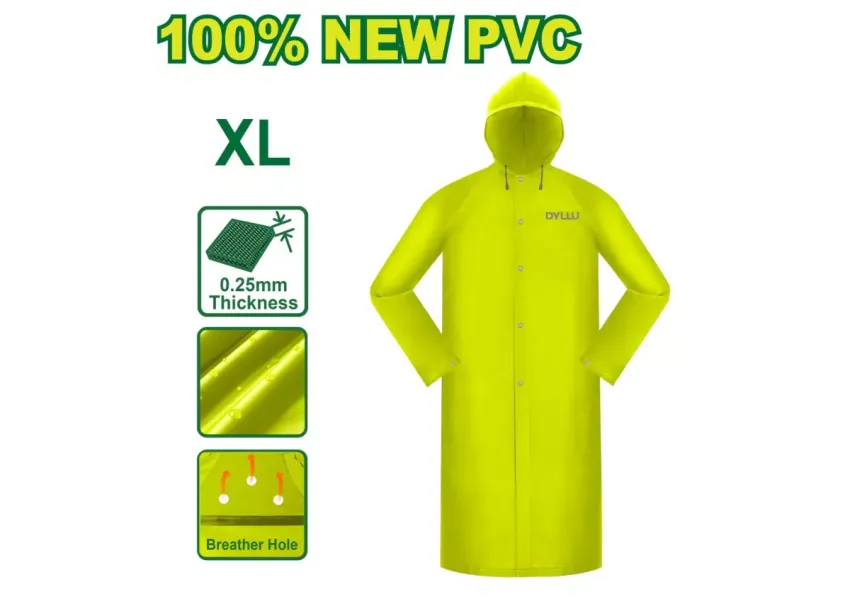 Բաճկոնը թույլ է տալիս բաց տարածքում աշխատել՝ նույնիսկ երբ անձրև է տեղում։ Անձրևապաշտպան բաճկոնը հարմար է կրելու նաև այլ առիթներով։ Պատրաստված է 100% նոր ՊՎՔ նյութից, որը ջրակայուն է և ազատ շնչող։ Գլխանոցի քուղը կարգավորվող է։