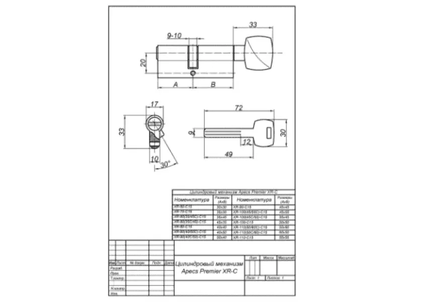 Բարձրորակ Apecs գլանային մեխանիզմները պատրաստված են արույրից: Նախատեսված են մուտքի դռների համար: Միջուկները փորձված են և ունեն սերտիֆիկատ համաձայն՝ ԳՕՍՏ 5089-2011: Գլանային մեխանիզմները պաշտպանված են հարվածներից և հորատումից: Խորհուրդ տրվող պարագաներ՝ միջուկների հետ տեղադրման համար (վաճառվում են առանձին)․ Apecs Protector Basic, Apecs Protector Pro 50։