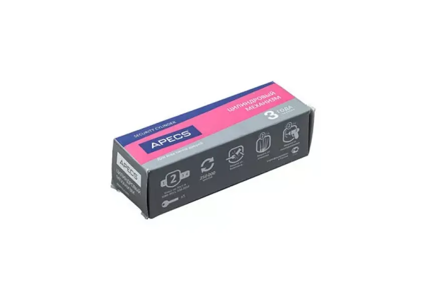 Apecs SM գլանային մեխանիզմները պատրաստված են արույրից: Նախատեսված են մուտքի դռների համար: Միջուկները փորձված են և ունեն սերտիֆիկատ համաձայն՝ ԳՕՍՏ 5089-2011: Գլանային մեխանիզմները պաշտպանված են հարվածներից և հորատումից: Խորհուրդ տրվող պարագաներ՝ միջուկների հետ տեղադրման համար (վաճառվում են առանձին). Apecs Protector Basic, Apecs Protector Pro 50: