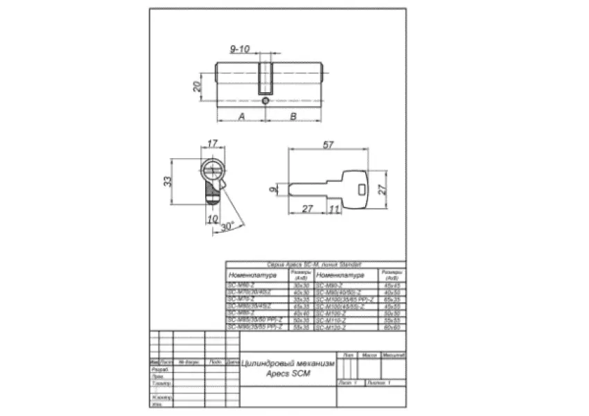 Apecs SM գլանային մեխանիզմները պատրաստված են արույրից: Նախատեսված են մուտքի դռների համար: Միջուկները փորձված են և ունեն սերտիֆիկատ համաձայն՝ ԳՕՍՏ 5089-2011: Գլանային մեխանիզմները պաշտպանված են հարվածներից և հորատումից: Խորհուրդ տրվող պարագաներ՝ միջուկների հետ տեղադրման համար (վաճառվում են առանձին)․ Apecs Protector Basic, Apecs Protector Pro 50։