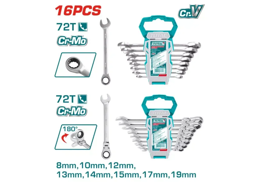 Բանալիների հավաքածու 16 հատ 8-19մմ TOTAL THT103RK166