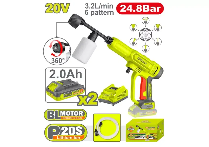 Բարձր ճնշման լվացող սարք մարտկոցային 20Վ 3.2լ/ր (2 մարտկոց, լիցքավորիչ) DYLLU DTQX11203