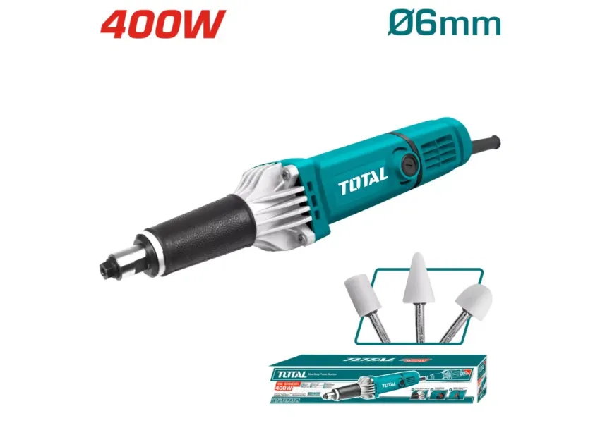 TOTAL TG504062 բազմաֆունկցիոնալ գրավերը հարմար է տարբեր աշխատանքների համար, ինչպես օրինակ՝ փորագրման, աղալու, հղկման և այլն: Առկա է փոփոխական արագության կարգավորման գործառույթ։ Փաթեթում առկա է ածխային խոզանակների հավաքածու՝ գործիքի երկարակեցության համար։