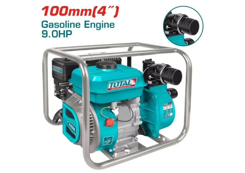 TOTAL TP3401 ջրի բենզինային պոմպը բարձր արտադրողականությամբ սարքավորում է ջրի մատակարարման համար։ Ներքաշման և արտանետման անցքի տրամագիծը՝ 100 մմ։ Ապահովում է առավելագույն հոսք՝ 1500 լ/ր, քաշելու բարձրությունը՝ մինչև 30 մ, ներծծման խորությունը՝ մինչև 8 մ։ Հագեցած է 9 ձիաուժ հզորությամբ շարժիչով։ Կոճով գործարկման համակարգը երաշխավորում է օգտագործման հարմարավետություն։