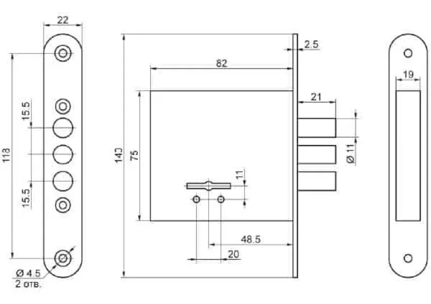 Փականը նախատեսված է միջսենյակային և մուտքի դռների համար: Ունիվերսալ լինելու շնորհիվ կարող է տեղադրվել թե՛ աջ և թե՛ ձախ կողմից բացվող դռների վրա: Փակվում է մեկ կողմից: Հավաքածուի մեջ առկա են երեք բանալիներ և երեք գլանային սողնակներ, որոնց տրամագիծը կազմում է 11մմ: