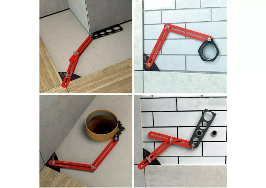 Սալիկների գծանշում՝ կարճ ժամանակում: Սալիկներ տեղադրելիս միշտ պետք է վարդակների համար անցքեր անել, շրջանցել կոմունալ խողովակները, սյուները կամ անկյունները: Նման տարրերի նշումը պահանջում է մանրակրկիտ ճշգրտություն և շատ ժամանակ, որը կարող է օգտագործվել շատ ավելի արդյունավետ: TileTemplate սալիկապատողի տրաֆարետը արդյունավետ լուծում է սալիկապատման աշխատանքների արտադրողականությունն ու ճշգրտությունը բարձրացնելու համար: Բազմաֆունկցիոնալ կցորդները թույլ են տալիս փոխանցել տարբեր տարրերի դիրքերը, ներառյալ՝ - վարդակների համար անցքերինը, - տարբեր տրամագծերի ջրի խողովակների անցքերինը, - արդեն տեղադրված ջրի և կոյուղու խողովակների համար անցքերինը, - պլաստիկ գլխիկի շնորհիվ ոչ ստանդարտ տրամագծերի փոխանցում կատարելը, - Սյուների անկյունները և այլ հատվածների նշում կատարելը։