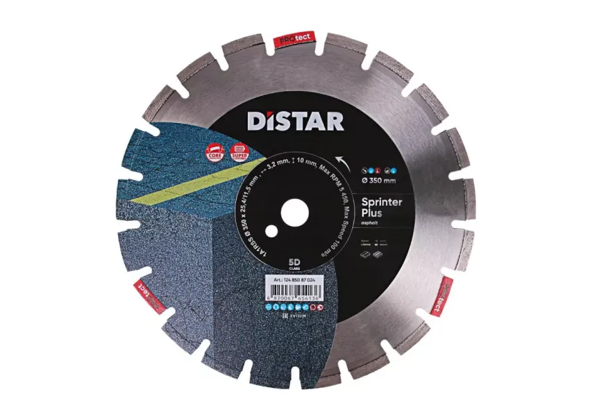 Distar 1A1RSS/C1S-W Sprinter Plus ալմաստե սկավառակը մշակված է ասֆալտի և միևնույն մակարդակի այլ հղկանյութերի կտրման համար։