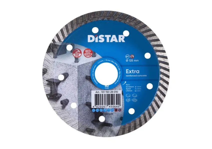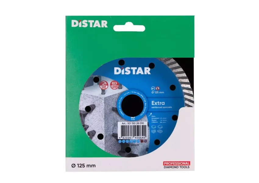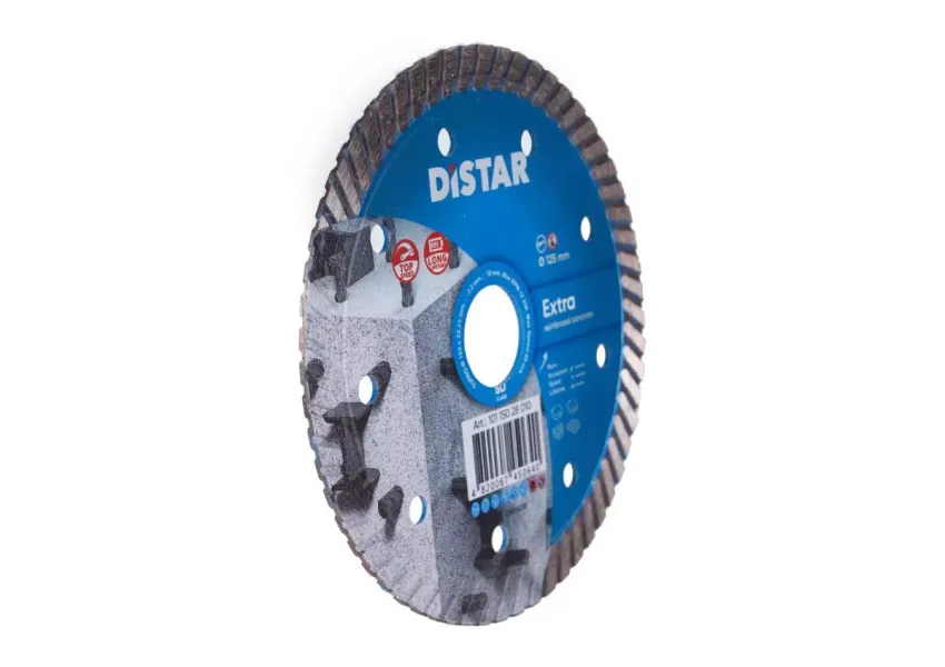 Distar Turbo Extra ալմաստե սկավառակն օգտագործվում է պինդ նյութերի մշակման համար։ Turbo սկավառակների շարքում բետոն կտրող լավագույն սկավառակներից է։