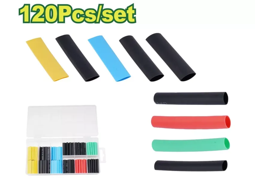 Հավաքածուն ներառում է 120 հատ ջերմակծկվող խողովակ, որոնք նախատեսված են հոսանքալարերի մեկուսացման համար։ Փաթեթում առկա են՝ 15 հատ - 4x40մմ (կանաչ), 15 հատ - 4x40մմ (սև), 15 հատ - 4.5x40մմ (կարմիր), 15 հատ - 4.5x40մմ (սև), 15 հատ - 7x40մմ (սև), 15 հատ - 7x40մմ (կապույտ), 15 հատ - 8x40մմ (դեղին), 15 հատ - 8x40մմ (սև)։