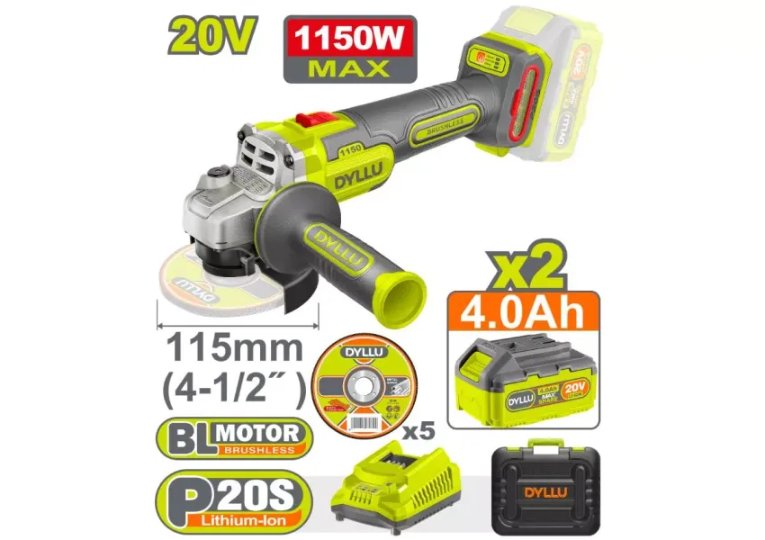 DYLLU DTLAPB522 — Մարտկոց Li-Ionային ԱԿՄ անխոզանակ շարժիչով, նախատեսված կտրելու, հղկելու և մաքրելու համար։ Աշխատում է 20 Վ Մարտկոց Li-Ionով, մաքուր հզորությունը մինչև 1150 Վտ, սկավառակի տրամագիծը՝ 115 մմ։ Պտույտների արագությունը կարգավորվում է 3000, 6000 և 9000 ռեժիմներով