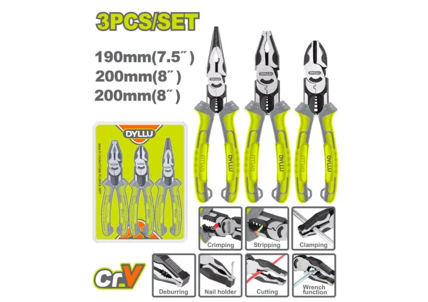 Բազմաֆունկցիոնալ հարթաշուրթ աքցանների հավաքածու Cr-V DYLLU DTPS0413