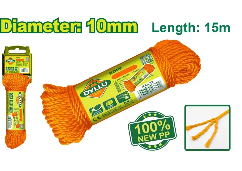 100% նոր պոլիպրոպիլենային պլաստիկից ճոպանը ջրակայուն է։ Դիմացկուն է բորբոսների, այլ սնկերի նկատմամբ և չի փտում: Ավելի ամուր է, քան բնական մանրաթելային ճոպանները: Կատարյալ է ընդհանուր հավաքման, կենցաղային և գյուղատնտեսական օգտագործման համար: