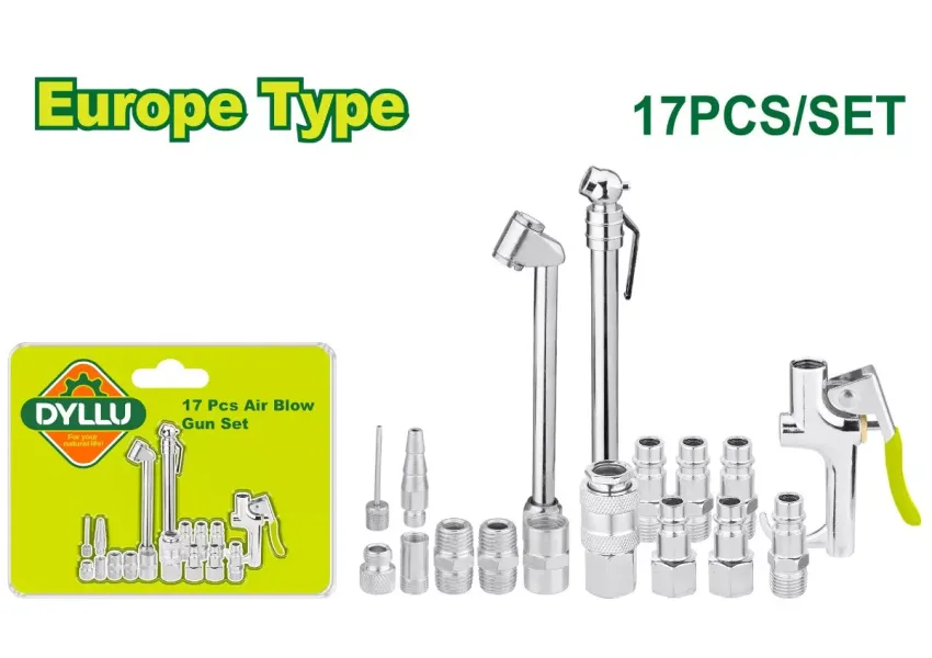 Եվրոպական տեսակի միացումով ատրճանակն օգտագործվում է փչելու, ինչպես նաև անվադողերի ճնշումը կարգավորելու նպատակով։ Փաթեթում ներառված է՝ - 1 հատ օդամղիչ ատրճանակ, - 1 հատ փչման ասեղ, - 1 հատ կոնաձև գլխիկ, - 1 հատ անվտանգության գլխիկ, - 1 հատ փչող ատրճանակի ադապտեր, -1 հատ ներքին պարուրակով կցորդիչ, - 1 հատ միակցիչ ադապտեր, - 2 հատ ներքին պարուրակով խցան, - 2 հատ կրկնակի միակցիչով խցան, - 4 հատ արտաքին պարուրակով խցան, - 1 հատ կրկնակի կցորդիչ՝ անվադողերի առանձնացման համար։