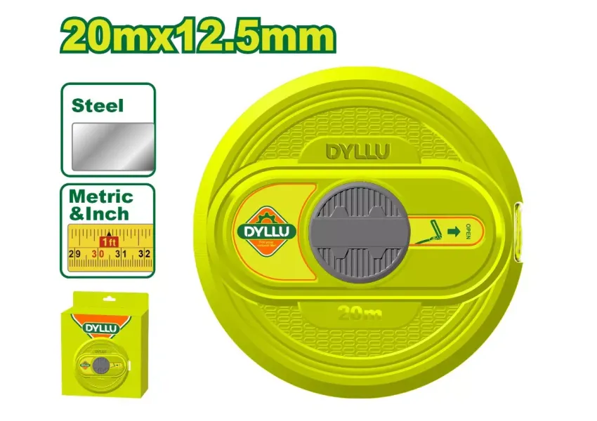 DYLLU DTMT3520 չափիչ ժապավենը հարմար է մինչև 20մ երկարությամբ ցանկացած չափումներ կատարելու համար։ Չափումը՝ մմ, դյույմ։ Ներկառուցված բռնակը հարմարավետ է դարձնում ժապավենի օգտագործումն ու պահպանումը։