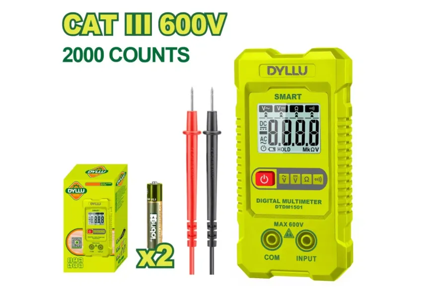 DYLLU DTDM1501 թվային մուլտիմետրը հագեցած է խելացի գործառույթներով։ Իրական միջին քառակուսային արժեքը հաշվվում է 2000։ Առկա է 2 հատ R03 AAA մարտկոց։