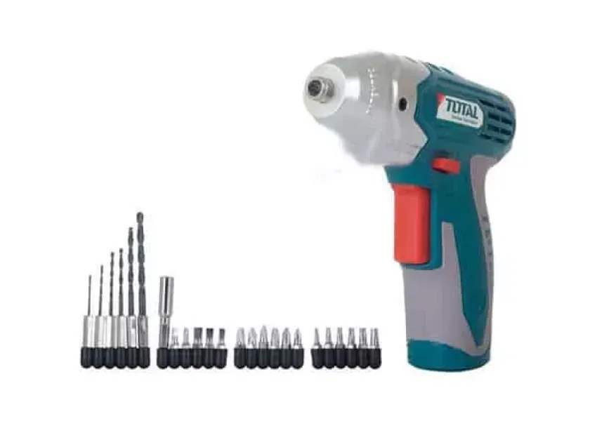 TOTAL TD4486 մարտկոցային պտուտակահանն արդյունավետ գործիք է՝ նախատեսված մոնտաժային աշխատանքների համար։ Գործիքը համալրված է LED լույսով և լիցքավորման մակարդակի ցուցիչով՝ ավելի հարմար օգտագործման համար։ Փաթեթում ներառված են՝ 17 հատ բիթ (25 մմ), բիթերի մագնիսական բռնիչ, վեցանկյուն սրունքով 6 հատ գայլիկոն (տրամագիծը՝ 1.5 - 5 մմ)։