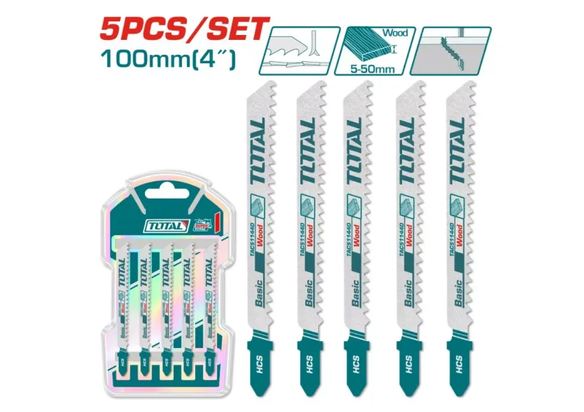 Էլեկտրական նրբասղոցի դանակների հավաքածու 5 հատ փայտի համար 100մմ TOTAL TAC51144D