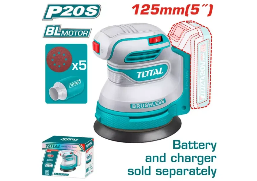 Էքսցենտրիկ հղկող մեքենա մարտկոցային 20Վ 125մմ TOTAL TROSLI2002