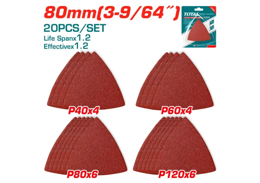 Եռանկյուն հղկաթղթի հավաքածու 80մմ 20 հատ TOTAL TAC78080201