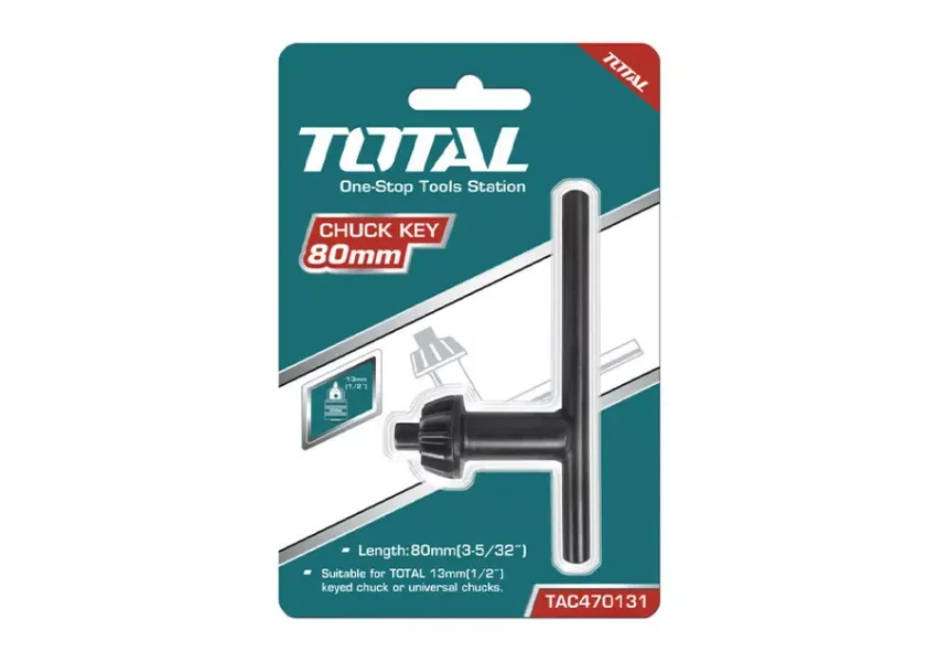 TOTAL TAC470131-ը 13 մմ պապոնի բանալի է, նախատեսված գայլիկոնիչի պատրոնի սեղմման և բացման համար։ Այն ապահովում է հարմարավետ և արագ ներդիրների փոխանակում՝ բարձրացնելով աշխատանքի արդյունավետությունն ու հուսալիությունը։ Համատեղելի է հետևյալ մոդելների հետ՝ TAC451301.1 և TAC451301։