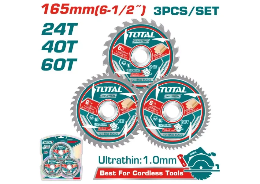 Գերբարակ կտրող սկավառակների հավաքածու փայտի համար 165մմ 3 հատ TOTAL TAC236165