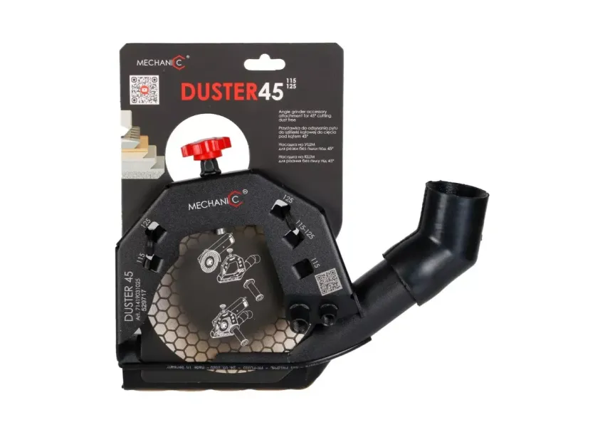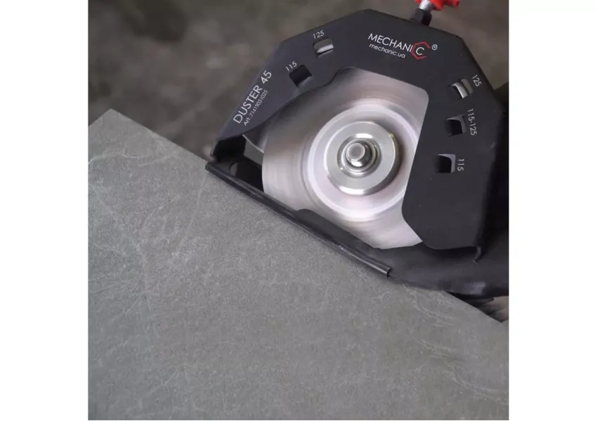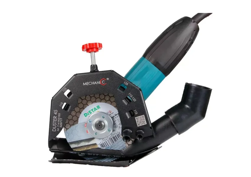 ԱՀՄ-ով կերամիկական սալիկի կտրումն ուղեկցվում է մեծ ծավալի փոշու կուտակմամբ, հատկապես՝ 45° անկյունագծով կտրելիս։ Distar Duster 45 կցորդիչը հիանալի լուծում է այդ խնդիրը՝ գրեթե ամբողջովին քաշելով փոշին փոշեկուլի մեջ։ Բացի այդ, գլխիկն ունի այլ առավելություններ. - հնարավոր է երկար ժամանակ աշխատել՝ առանց հոգնելու, քանի որ աքսեսուարը չի ծանրացնում անկյունային հղկող մեքենան և չի առաջացնում լրացուցիչ ծանրաբեռնվածություն ձեռքերի վրա, - կցորդիչի խողովակն ունի պատուհանիկ, որը թույլ է տալիս վիզուալ վերահսկել կտրման գործընթացը։ Կցորդիչն ունիվերսալ է, կարող է տեղադրվել 115մմ, 125մմ ցանկացած արտադրողի և մոդելի ԱՀՄ-ին։