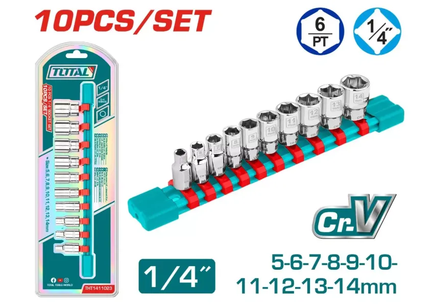 Գլխիկների հավաքածու 10կտոր 1/4" :5-6-7-8-9-10-11-12-13-14մմ TOTAL THT1411023