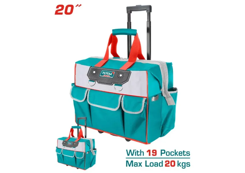 Անիվներով ճամպրուկը իդեալական հարմար է գործիքների և տարբեր նյութերի տեղափոխման համար։ Պայուսակը համալրված է տելեսկոպիկ բռնակով և լրացուցիչ հենակներով՝ ավելի կայուն պահելու նպատակով։ Գործիքների այս պայուսակն ունի արտաքին և ներքին 19 գրպան, ինտեգրված մետաղական շրջանակ։ Առավելագույն տարողունակությունը 20կգ է։ Ջրակայուն և ջերմակայուն է:
