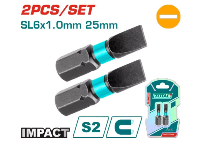 Հարվածային բիթեր պտուտակադարձիչի համար 2 հատ 25մմ TOTAL TACIM71SL625