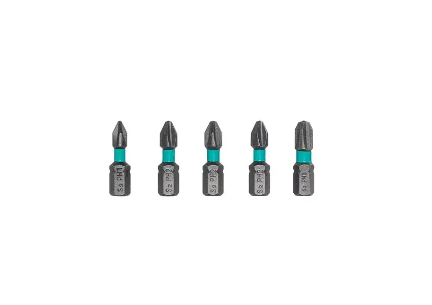 Հավաքածուի մեջ ներառված են 30 հարվածային բիթեր, որոնք պատրաստված են քրոմ վանադիումային պողպատից, ինչն ապահովում է բարձր որակ և շահագործման երկար ժամկետ: Յուրաքանչյուր հարվածային կցիչի երկարությունը կազմում է 25մմ: Ներառված բիթերի տեսակները՝ խաչաձև (PH), պոզիդրայվ խաչաձև (PZ), տափակ (SL), վեցանկյուն (HEX), աստղաձև (TORX), քառակուսի (S): Բիթերը՝ PZ1, PZ2, PZ2, PZ2, PZ3, PH1, PH2, PH2, PH2, PH3, SL3, SL4, SL5, SL6, SL7, T10, T15, T20, T25, T27, T30, T40, H3, H4, H5, H6, S1, S2, S3։