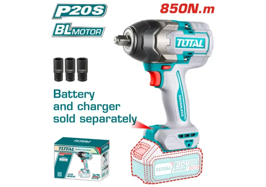 Հարվածային մանեկադարձիչ մարտկոցային TOTAL TIWLI20851 20Վ 850Նմ