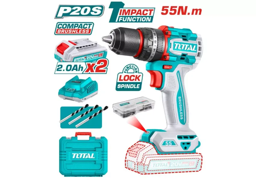 Հարվածային պտուտակադարձիչի հավաքածու մարտկոցային 20Վ 55Նմ TOTAL TIDLI20558