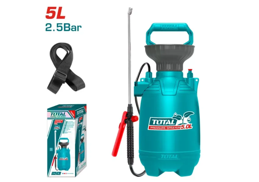TOTAL THSPP30502 ձեռքի հեղուկացիրը նախատեսված է բույսերի, տնկիների ոռոգման համար: Հնարավոր է հեղուկ պարարտանյութեր ցողել նաև միջատների դեմ նյութեր լցնել, ինչպես նաև կենցաղային աշխատանքների համար: Աշխատանքի սկզբունքը․ պոմպի օգնությամբ բաքում ճնշում է ստեղծվում, հեղուկի լուծումն իրականացվում է բռնակի կոճակը սեղմելով: