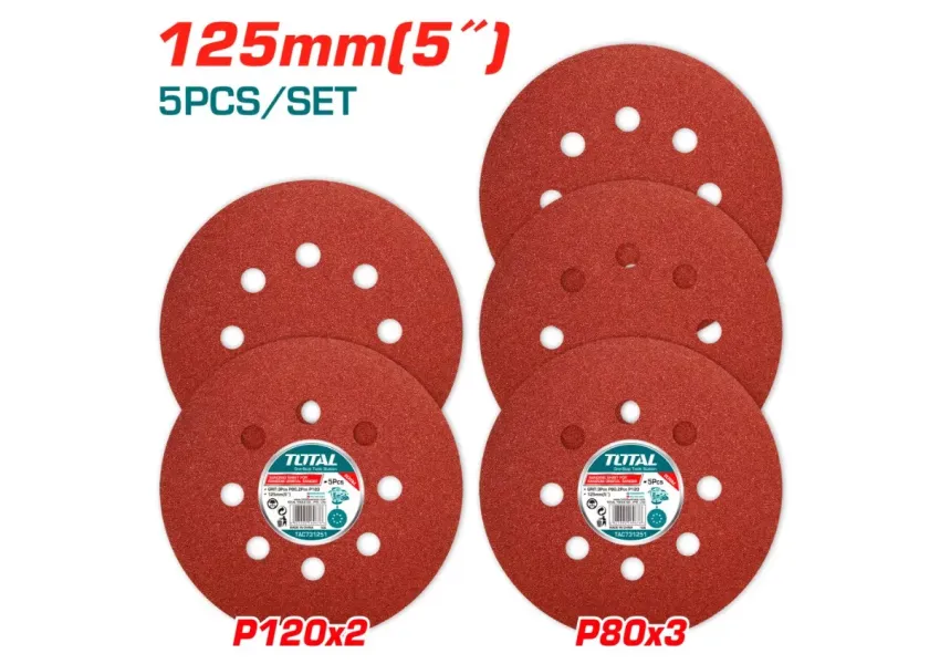 Հղկաթղթի հավաքածու 125մմ 5կտոր TOTAL TAC731251