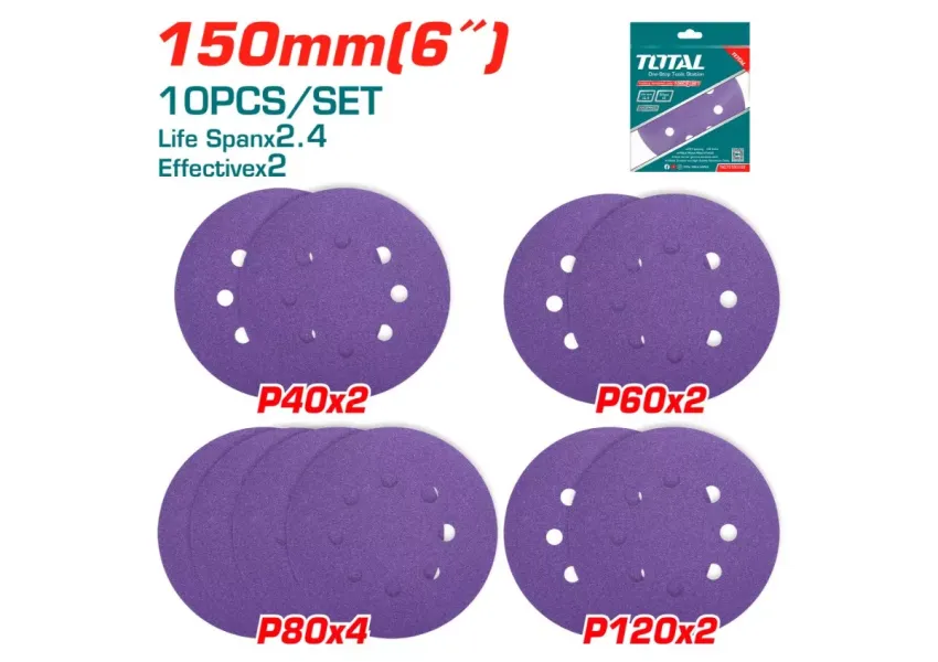 Հղկաթղթի հավաքածու մանուշակագույն 150մմ 10 հատ TOTAL TAC73150103