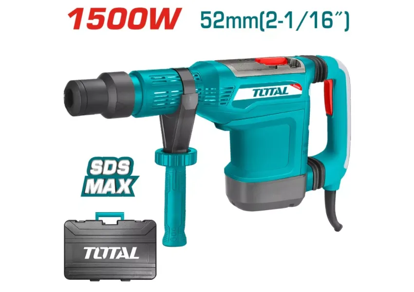TOTAL TH115526 1500Վտ էլեկտրական հորատիչը հագեցած է կրկնակի հակաթրթռման համակարգով։ Գործիքի արագությունը կարգավորվող է։ Հորատիչի պատրոնը՝ SDS MAX: Հորատման տրամագիծը՝ 52մմ (գայլիկոն), 125մմ (սղոցաձև ծակիչ)։ Փաթեթում ներառված է լրացուցիչ ածխածնային խոզանակների հավաքածու, որոնց համար գործիքին ներկառուցված է սպասարկման ցուցիչ։