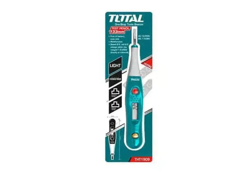 TOTAL THT1909 ինդիկատորը լարումը չափելու սարք է։ Ինդիկատորը չի ցուցադրում լարման ճշգրիտ ցուցանիշները, սակայն ունի 12Վ, 36Վ, 55Վ, 110Վ և 220Վ սանդղակներ և ցույց է տալիս ամենամոտ ցուցանիշը՝ կախված չափված լարումից։ Ինդուկցիոն տեստ՝ ֆազային գիծը, հողանցման գիծը և ֆազային գծի խզման կետը հայտնաբերելու համար։