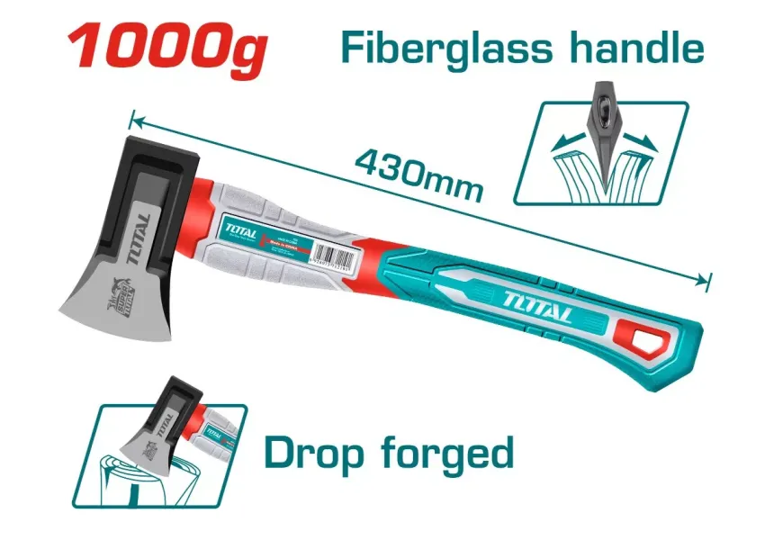 TOTAL THAX0611000F կացինը պատրաստված է նորարարական տեխնոլոգիաների կիրառմամբ։ Կացինի աշխատանքային մասը կարծրացած պողպատից է, հարմարավետ և չսայթաքող բռնակը՝ ապակեթելքից։