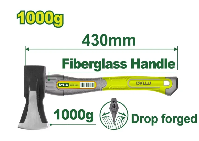 DYLLU DTHM6321 կացինի աշխատանքային մասը պատրաստված է կարծրացած ածխածնային պողպատից։ Հարմարավետ բռնակն ապակեթելքից է, ձեռքից չի սայթաքում։