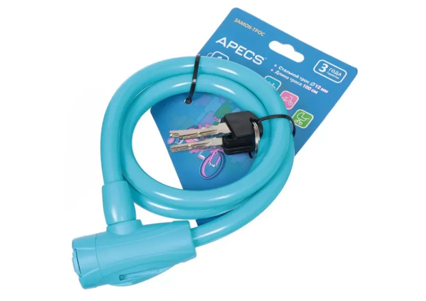 Apecs PD-84-100CM-BLUE հեծանիվի կողպեքը համալրված է պողպատե ճոպանով, մշտական ծածկագրով և վերակոդավորման հնարավորությամբ։ Կողպեքը հագեցած է գաղտնիության գլանային մեխանիզմով։ Ճոպանով հեծանիվի կողպեքը հարմար է որպես հեծանիվների, սայլակների և մարզասարքերի հակաառևանգման միջոց։ Կողպեքը բացվում է բանալիի պտտմամբ, առանց մեխանիզմից բանալին հանելու` զատելով ճոպանը։ Կողպեքը փակվում է ավտոմատ՝ առանց բանալիի։