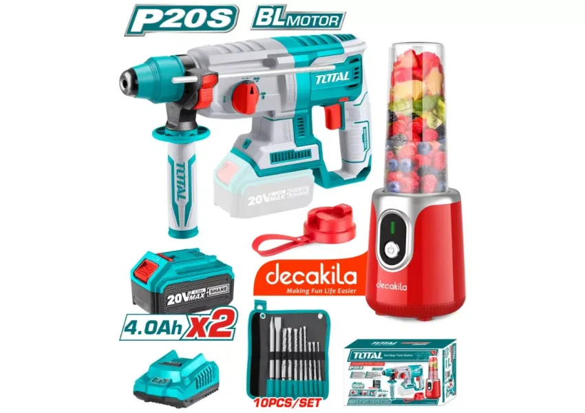 Փաթեթում ներառված են՝ 8 հատ SDS Plus գայլիկոն (6x160 մմ, 8x160 մմ, 10x160 մմ, 8x210 մմ, 10x210 մմ, 12x210 մմ, 14x210 մմ, 16x210 մմ), 2 հատ SDS Plus հատիչ (14x250 մմ, 14x250x20 մմ), 1 հատ USB լիցքավորման մալուխ, 2 հատ 4.0 Աժ մարտկոց (TFBLI2002), 1 հատ լիցքավորիչ (TFCLI2001)։