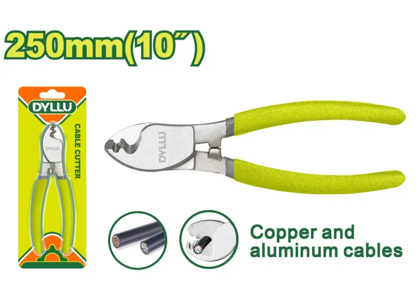 DYLLU DTCT1910 ձեռքի գործիքը նախատեսված է ալյումինե և պղնձե հաղորդալարերի կտրման համար։ Աշխատանքային մասը մշակված է ժանգոտման դեմ հատուկ քսայուղով, ինչը ապահովում է գործիքի երկարաժամկետությունը։ Կտրիչի բռնակը հարմարավետ է և չի հոգնեցնում։