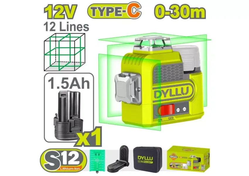 Լազերային 3D հարթաչափ մարտկոցային 12Վ 0-30մ DYLLU DTLE8M12