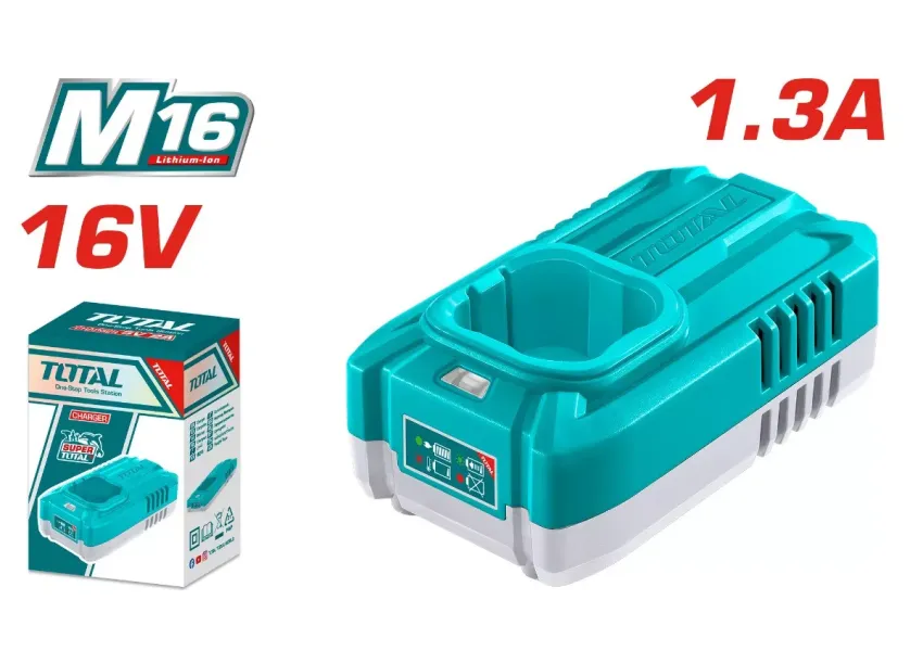 TOTAL TFCLI1613 16Վ լիցքավորիչը նախատեսված է M16 մարտկոցների լիցքավորման համար։