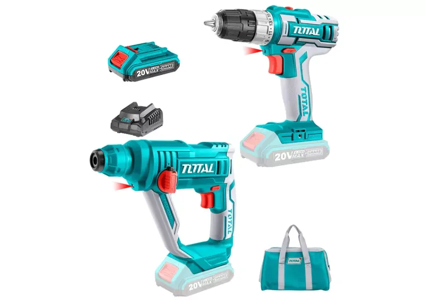 Մարտկոցային 20Վ գործիքների հավաքածու․ պտուտակադարձիչ (TDLI20024), հորատիչ (TRHLI1601) TOTAL TCKLI2008