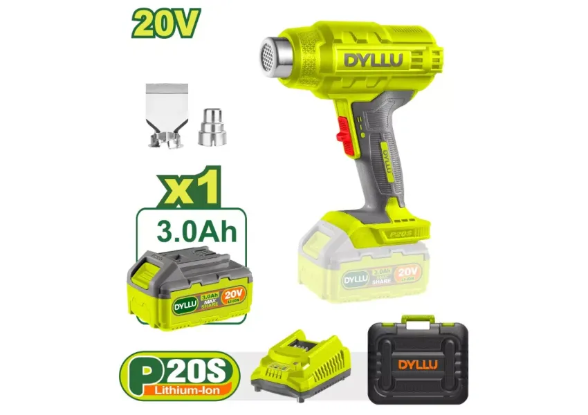 Տեխնիկական ֆենը նախատեսված է շինարարության օբյեկտներում, վերանորոգման աշխատանքներում բազմաֆունկցիոնալ կիրառման համար։ Ֆենը ներքին հովհարիչի միջոցով ստեղծում է օդի հոսք, որի ջերմաստիճանը կարող է հասնել մինչև 550°C։ Փաթեթում. - 1 հատ ռեդուկցիոն գլխիկ, - 1 հատ ռեֆլեկտորային գլխիկ, - 1 հատ մարտկոց 3.0 Աժ (DTLBP530), - 1 հատ լիցքավորիչ (DTFCP518):