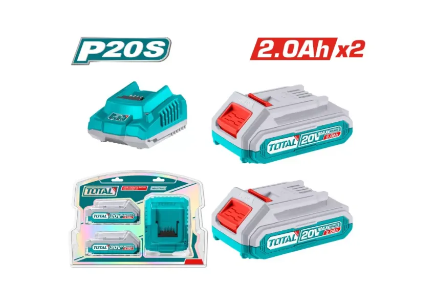 Լիթիում-իոնային մարտկոցը հարմար է բոլոր P20s գործիքներին։ Փաթեթը ներառում է՝ 2 հատ Li-ion մարտկոց, 1 հատ լիցքավորիչ։